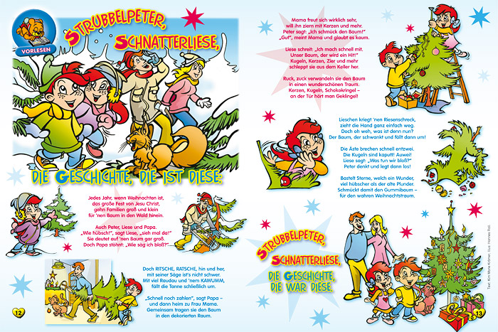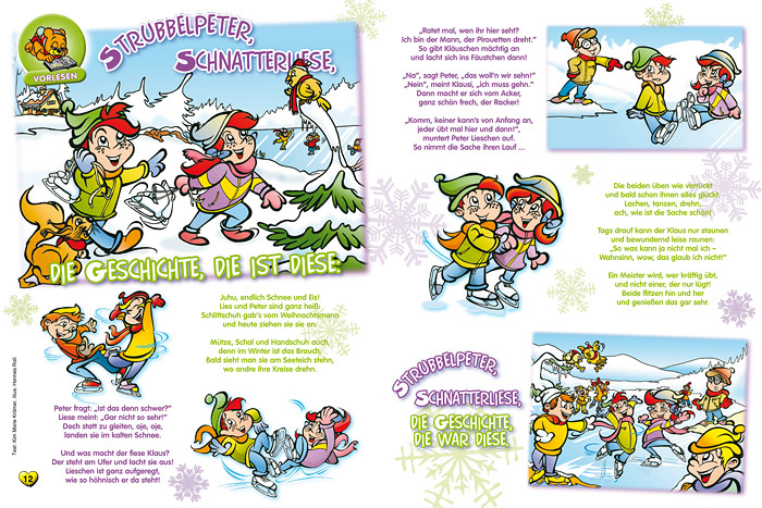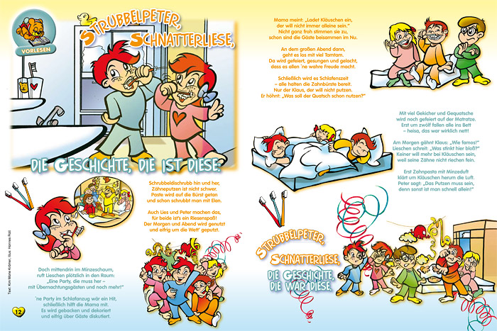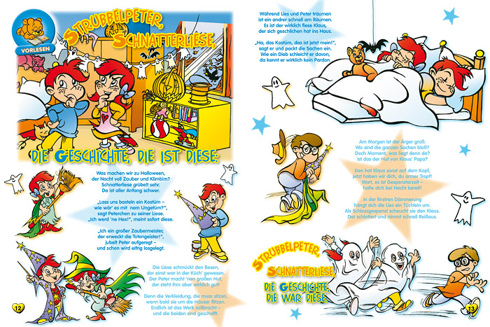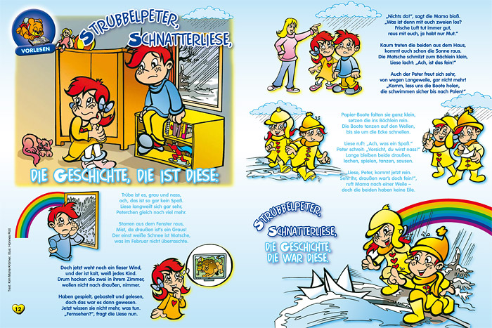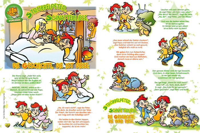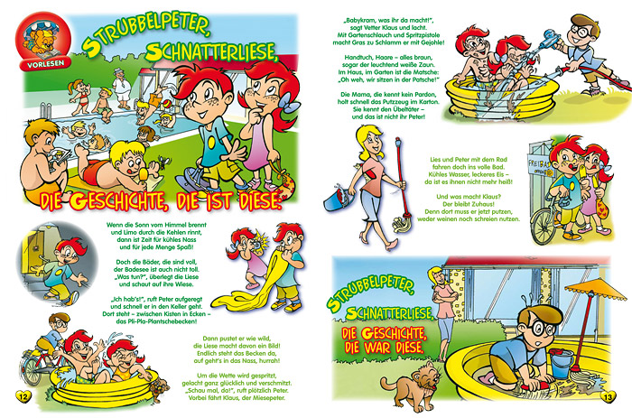“Strubbelpeter” is a character created under the supervision of the legendary Rolf Kauka (known as the “German Walt Disney”) in the 1970s for the monthly periodical “Bussi Bär”. In 2008 Hannes Rall redesigned and modernized the character designs and is in charge of creating a new episode every month. |