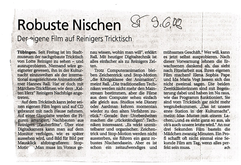 Hannes elaborates on the relevance of Lotte Reiniger for contemporary animation in general and about her influence on his own work.